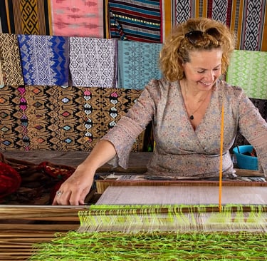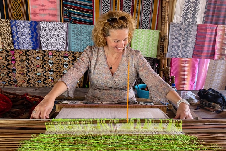 [10.00] Tiba di Desa Sukarara dan melihat proses pembuatan kain tenun