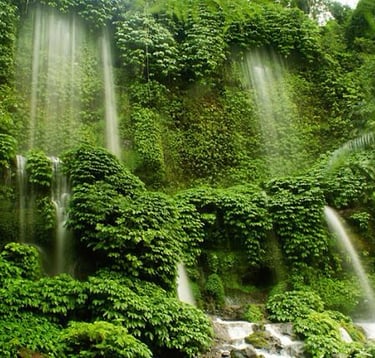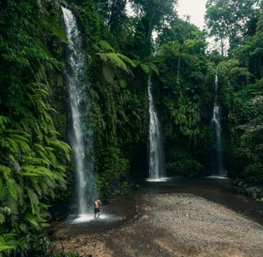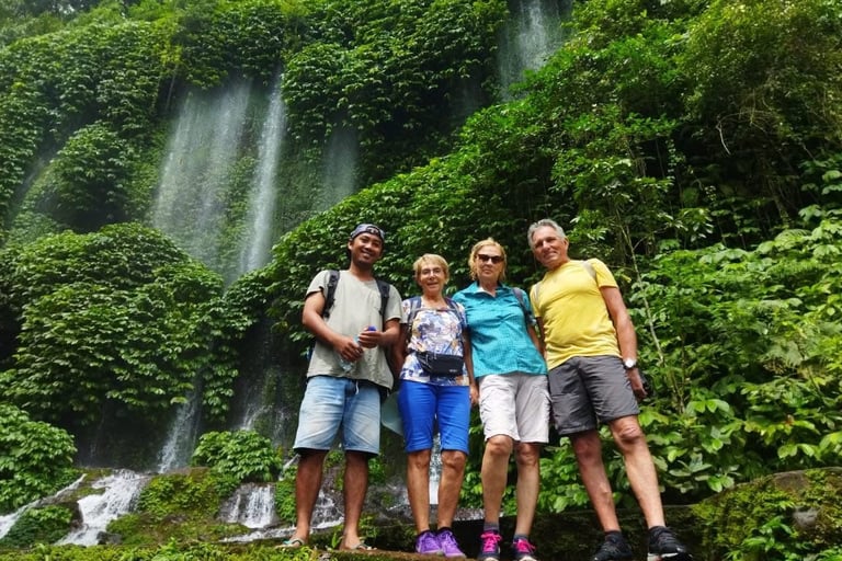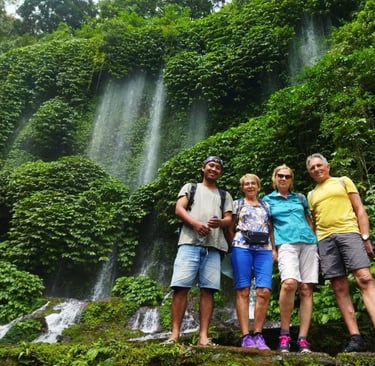 Rasakan kesejukan alami di dua air terjun ikonik Lombok dan nikmati ketenangan berjalan di tengah hamparan sawah hijau yang menenangkan jiwa.